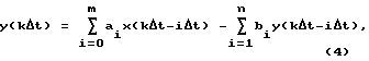 Получив ДПФ в виде непрерывной дроби, свернув ее в дробно-рациональную функцию![]() где аi, bi – параметры модели объекта, переходят от данного выражения к прогнозирующей модели в виде разностного уравнения ![]() где x(k t) – величина сигнала на входе объекта в k-том такте; y(k t) – величина сигнала на выходе объекта в k-том такте. Уравнение вида (4) позволяет восстанавливать значения модельного сигнала yм(k t) на выходе модели.