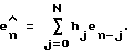 Усреднение значений оценки шума кадра выполняют с помощью следующей функции фильтра импульсной характеристики конечной длительности (ИХКД) для обеспечения общего значения оценки шума, e , используемого для корректировки передаточной функции нелинейного элемента 500:![]() Суммирование e выполняют от 0 до N. Значение еn-j представляют предыдущие оценки шума кадра, j=N и соответствующее еn-N является значением оценки шума кадра, который имеет место до N-числа кадров, предшествующих текущему кадру; j=0 и соответствующая еn является значением оценки шума текущего кадра. Конкретно, в тех случаях, когда используют только одну предыдущую оценку шума, как в предпочтительном осуществлении, e n определяют следующим образом:e n = en+(1- )en-1,где является эмпирически определенной постоянной, приблизительно равной 0,8 в приводимом в качестве примера предпочтительном осуществлении.