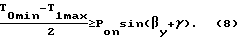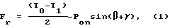 Радиальное усилие, действующее на подушки рабочего валка со стороны опорных плоскостей и представляющее собой сумму опорных реакций, уравновешивающих полуразность заднего и переднего натяжений полосы и горизонтальную проекцию межвалкового усилия, равно (см. чертеж):![]() где Т0 – среднее (номинальное) значение заднего натяжения, Н; Т1 – среднее (номинальное) значение переднего натяжения, Н; Pon – усилие, действующее между рабочим и опорным валками (межвалковое усилие), Н; – угол между линией, соединяющей центры валков, и вертикалью, рад; – угол между линией, соединяющей центры валков, и линией действия силы Pon, рад.