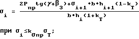 т в каждом межклетевом промежутке для разных марок стали и поддержание величины удельного натяжения н путем задания величины коэффициента к , представляющего собой отношение н к т, отличающийся тем, что задают предельно допустимое значение к = к nр, дополнительно для каждой клети определяют коэффициент кт нестабильности натяжений как отношение наибольшего отклонения среди переднего и заднего натяжений от номинальной технологически заданной их величины к номинальной величине натяжения, угол между линией, соединяющей центры рабочего и опорного валков, и вертикалью, угол 3 между линией, соединяющей центры рабочего и опорного валков, и линией действия межвалкового усилия при замедлении стана, измеряют толщину полосы и усилия прокатки в каждой клети, после чего величину удельных натяжений в отдельных межклетевых промежутках поддерживают, исходя из следующих соотношений:![]() i = k np T при i>k np T,где i – величина удельного натяжения перед i-й клетью, Па; i+1 – величина удельного натяжения за i-й клетью, Па;Рпр – усилие прокатки, Н; b – ширина полосы, м; hi – толщина полосы перед i-й клетью, м; hi+1 – толщина полосы за i-й клетью, м; – [рад] ; 3 – [рад] .