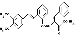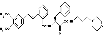 Для локального наружного применения, например, как пудра, мазь или спрей, активные вещества могут содержаться в обычной концентрации. Как правило, активные вещества содержатся в количестве от 0,001 до 1 вес. %, предпочтительно от 0,01 до 0,1 вес. %При внутреннем применении лекарственные препараты даются в отдельных дозах. В отдельной дозе даются на кг веса тела от 0,1 до 100 мг. Лекарственный препарат можно давать ежедневно в одну или несколько доз в зависимости от вида и серьезности заболевания. В соответствии с желаемым видом применения лекарственные препараты содержат наряду с активным веществом обычные наполнители и растворители. Для локального наружного применения могут использоваться фармацевтически-технические вспомогательные вещества, такие как этанол, изопропанол, оксиэтилированное касторовое масло, оксиэтилированное гидрированное касторовое масло, полиакриловая кислота, полиэтиленгликоль, полиэтиленгликостеарат, этоксилированные спирты жирного ряда, парафиновое масло, вазелин и ланолин. Для внутреннего применения пригодны, например, молочный сахар, пропиленгликоль, этанол, крахмал, тальк и поливинилпирролидон. Кроме того, лекарственные формы могут содержать антиокислители, такие как токоферол и бутилированный оксианизол и бутилированный окситолуол, а также улучшающие вкус добавки, стабилизаторы, эмульгаторы и смазки. Содержащиеся наряду с активным началом вещества, а также вещества, применяемые при изготовлении фармацевтических препаратов, являются токсикологически приемлемыми и совместимыми с соответствующим активным веществом. Изготовление лекарственных препаратов производится обычным образом, например, путем смешения активного вещества с другими обычными носителями и разбавителями. Лекарственные препараты могут даваться различным образом, например орально, парентерально, внутривенно посредством инфузий, подкожно, внутрибрюшинно и локально. Таким образом, возможны такие лекарственные формы, как таблетки, эмульсии, растворы для вливания и инъекций, пасты, мази, гели, кремы, лосьоны, пудры и спреи. Примеры Пример 1 (S)-2-(Е-2-(нафт-2-ил)-этен-1-ил)-N-(1-(N-(3-морфолино-1-ил-пропан-1-ил)-карбамоил-1-оксо-3-фенил-пропан-2-ил)-бензамид ![]() а) сложный этиловый эфир 2-(2-(Е-нафт-2-ил)-этен-1-ил)-бензойной кислоты 29,7 г (0,13 моль) 2-винилнафталина, 25 г (0,16 моль) сложного этилового эфира 2-бромбензойной кислоты, 22,5 мл (0,16 моль) триэтиламина, 0,54 г диацетата палладия и 1,44 г трифенилфосфина нагревают в 200 мл ацетонитрила в течение 20 часов при 100oС. После этого смесь выливают на воду и несколько раз экстрагируют сложным этиловым эфиром уксусной кислоты. Органическую фазу концентрируют под вакуумом и остаток подвергают хроматографической очистке на силикагеле. Выход: 34 г (71%). б) 2-(Е-2-(нафт-2-ил)-этен-1-ил)-бензойная кислота 34 г (112,5 ммоль) промежуточного продукта стадии а) растворяют в 200 мл тетрагидрофурана и примешивают 9,5 г (168,7 ммоль) 80%-ной гидроокиси калия, растворенной в 150 мл воды. Компоненты нагревают 10 часов с обратным холодильником. После этого реакционную смесь подкисляют концентрированной соляной кислотой и экстрагируют сложным этиловым эфиром уксусной кислоты. Органическую фазу промывают водой, сушат и концентрируют под вакуумом. Остаток обрабатывают небольшим количеством этилацетата и отсасывают. Выход: 23,8 г (78%). в) (S)-O-(трет. -бутил)-N-(1-