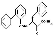 Пример 5(S)-2-фенил-N-(1-карбамоил-1-оксо-3-фенил-пропан-2-ил)-бензамид ![]() а) 2-фенил-N-(-3-(S)-1-карбамоил-1-гидрокси-3-фенил-пропан-2-ил)-бензамид 0,8 г (4 ммоль) бифенил-2-карбоновой кислоты и 1,2 г (4 ммоль) промежуточного соединения стадии б) примера 2 подвергают взаимодействию при условиях стадии в) примера 2. Выход продукта составляет 1,2 г (80%). б) (S)-2-фенил-N-(1-карбамоил-1-оксо-3-фенил-пропан-2-ил)-бензамид 0,75 г (2 ммоль) промежуточного соединения стадии а) подвергают окислению аналогично стадии е) примера 1. Выход продукта составляет 0,35 г (47%). 1H-ЯМР (D6-ДМСО): = 2,8 (1Н), 3,1 (1Н), 5,2 (1Н), 7,0-7,5 (14Н), 7,9 (1Н), 8,1 (1Н) и 8,9 (1Н) млн.д.
