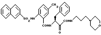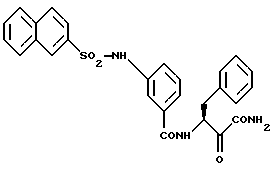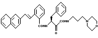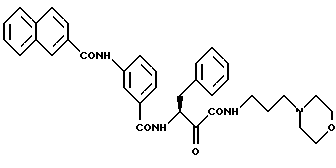Пример 272-(Е-2-пирид-2-ил-этен-1-ил)-N(1-карбамоил-1-оксо-3-фенил-пропан-2-ил)бензамид МС: m/e = 399(M+). Пример 28 2-(Е-2-никотиноил-этен-1-ил)-N(1-карбамоил-1-оксо-3-фенил-пропан-2-ил)бензамид МС: m/e = 428(M+). Пример 29 3-нафт-2-илсульфонамидо-N(1-N(3-морфолин-1-илпропан-1-ил)карбамоил-1-оксо-3-фенил-пропан-2-ил)-бензамид 1H-ЯMP(D6-ДMCO): = 1,5 (2H), 2,1-2,4 (4Н), 2,9 (1Н), 3,1-3,5 (5Н), 3,6(4Н), 5,2 (1Н), 7,1-8,1 (14Н), 8,3 (1Н), 8,9 (2Н) и 10,8 (шир.) млн.д.