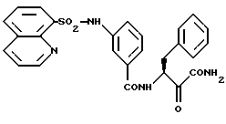 Пример 383-пирид-2ил-N(1-карбамоил-1-оксо-3-фенил-пропан-2ил)-бензами MC: m/e=374(M+). Пример 39 3-нафт-2илсульфонамид-(1карбамоил-1оксо-3-фенил-пропан-2-ил)-бензамид МС: m/e=468 (М+). Пример 40 3-(изохинолин-5-ил)сульфонамид-(1-карбамоил-1-оксо-3-фенил-пропан-2-ил)бензамид 1H-ЯМР(D6-DMSO): ‘ = 2,9-3,1 (2Н), 5,5 (1Н), 7,0-7,5 (5Н), 7,8-8,1 (10Н) и 8,8-9,0 (4Н) млн.дПример 41 3-(2-метил-1,2,3,4-тетрагидроизохинолин-5-ил)сульфонамид-N(1-карбамоил-1-оксо-3-фенил-пропан-2-ил)-бензамид МС: m/e=521 (М+). Формула изобретения