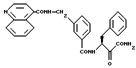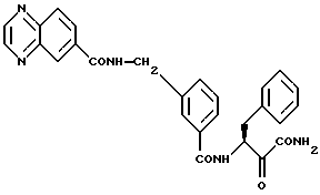 Пример 324-((5-трифторметил-хинолин-4-ил)меркаптометил)-N(1-карбамоил-1-оксо-3-фенил-пропан-2-ил)-бензамид MC: m/e = 538(M+). Пример 33 4-(хинолин-2-ил-меркаптометил)-N(1-карбамоил-1-оксо-3-фенил-пропан-2-ил)бензамид 1H-ЯMP(D6-ДMCO): = 2,9-3,2 (4Н), 4,0 (1Н), 4,7 (2Н), 5,3 (1Н), 7,1-8,2 (14H) и 8,9 (1Н) млн. д.