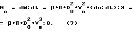 Энергетические величины цилиндрического входного потока диаметра D0 (фиг. 2) определяются согласно фиг.3 для приращения кинематической энергии (6)dW = dmxV2в:2 = ![]() ![]() ![]() D20 V2в dx:8, (6)где – плотность воздуха,D0 – диаметр входного внешнего конуса усилителя скорости, Vв – скорость ламинарного потока ветра, dx – элемент пути в направлении ветра. Если (6) разделить на элемент времени dt, то получим выражение для мощности второго потока Nв (7) ![]() Разделив (6) на элемент dx, получим выражение для силы ветрового потока (8) Fв =dW:dx = ![]() ![]() ![]() D20 V2в:8. (8)А учитывая понятие давления как отношения силы на площадь, то для него получим Pв = (Fв:Sв) = ![]() V20:2, (9)где Sв= ![]() D0 2:4 – площадь сечения ветрового потока в направлении х.