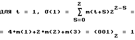 В этом случае предполагается, что f(x)=x3+х+1 используется для двоичного первичного полинома. Когда двоичный первичный полином подвергается “подъему” Хенселя в соответствии с выражением (6), характеристический полином, имеющий четверичные коэффициенты, приобретает вид g(x2)=(-13)(x3+х+1)(-x3-х+1) (mod 4). Его можно переписать в виде g(x)=x3+2х2+х+3.