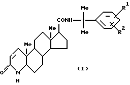Обнаружено, что соединение (I) настоящего изобретения обладает сильным игибирующим действием против простатических ферментов [заявка на патент Японии (kokai), Hei 5-32693] . Резонно ожидать ингибирующего действия против простатических ферментов против 5 -редуктазы типа II. Однако невозможно ожидать ингибирующего действия против 5 -редуктазы типа I, поскольку 5 -редуктаза типа I не локализуется в предстательной железе.
