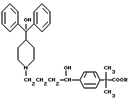 Предпочтительным соединением формулы I является соединение )-4-[1-гидрокси-4-[4-(гидроксидифенилметил)-1-пиперидинил]- , -диметилбензолуксусная кислота, которая известна также как фексофенадин, и ее отдельные стереоизомеры. Фексофенадин, в виде своей соли хлороводородной кислоты, недавно одобрен Управлением по контролю за продуктами и лекарствами США (FDA) для применения в качестве активного ингредиента в антигистаминном средстве, известном как аллеграТМ (AllegraТМ). Аллегра показана при лечении аллергического ринита при рекомендованной дозе 60 мг два раза в день.