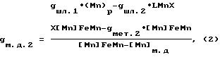 (57) Реферат: Изобретение относится к черной металлургии, конкретно к производству низкофосфористых марганцевых сплавов из бедных марганцевых руд, а именно ферромарганца и силикомарганца. Способ включает получение низкофосфористых марганцевых сплавов из бедных марганцевых руд в трех последовательно расположенных агрегатах типа конвертера. При этом расход металлической добавки gм.д. для каждого агрегата рассчитывают по математической зависимости. Способ характеризуется высокой степенью извлечения марганца и производительностью. Изобретение относится к черной металлургии, конкретно к производству низкофосфористых марганцевых сплавов из бедных марганцевых руд, а именно ферромарганца и силикомарганца. Известен способ производства низкофосфористого ферромарганца и силикомарганца, включающий загрузку шихты, состоящей из марганцевого концентрата, кокса, извести, металлической стружки в электропечь, последующий нагрев до заданной температуры, расплавление шихты и раздельный выпуск из печи расплава шлака и металла (1). Недостатками известного способа является предварительная подготовка шихтовых материалов – концентрата и кокса, что увеличивает стоимость получаемых сплавов и приводит к высоким потерям марганца из исходной руды. Известен способ получения низкофосфористого силикомарганца (2), который включает в себя загрузку в электропечь низкофосфористого марганцевого шлака, кокса, кварцита и железной стружки, плавление шихты, выпуск металла и шлака. Данный способ характеризуется высокими затратами на производство низкофосфористого марганцевого шлака и большими расходами электроэнергии. Наиболее близким аналогом (3) является способ получения ферросплавов, включающий выплавку ферросплавов в печи и выпуск шлака в печь-ковш, подачу в него восстановителя, шихтующих материалов, продувку расплава газом. Тем самым достигается наиболее полное восстановление ведущего элемента ферросплава из исходного материала. Недостатками данного способа являются высокие затраты электроэнергии на процессы плавления и нагрева и предварительная подготовка материалов. Кроме того, процесс является периодическим, что существенно снижает производительность комплекса печей. В основу изобретения поставлена задача разработать энергосберегающую технологию получения низкофосфористых марганцевых сплавов, обеспечивающую высокую степень извлечения марганца из бедных марганцевых руд без использования электрической энергии, снижение себестоимости и повышение качества выпускаемых сплавов, а также увеличение производительности. Поставленная задача достигается тем, что в способе получения низкофосфористых ферромарганца и силикомарганца из бедных марганцевых руд, по крайней мере, в двух последовательно расположенных агрегатах, включающем в себя непрерывную загрузку в первый агрегат, например, конвертер, шихты, состоящей из марганцевой руды, угля, металлической добавки, подачу кислорода, расплавление шихты и последующий нагрев до заданной температуры, непрерывный раздельный выпуск шлака во второй агрегат, а металла в изложницы, в отличие от ближайшего аналога в первый агрегат подают уголь и металлическую добавку в количестве, обеспечивающем восстановление фосфора до содержания его в шлаке менее 0,02%, при этом расход металли