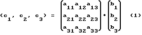 Разместим элементы матрицы (а11, а12, а13, a21, a22, а23, а31 а32, а33) поэлементно в устройствах памяти данных функциональных блоков 1-9. Векторы (b1, b2, b3) и (c1, c2, c3) поэлементно в устройствах памяти данных функциональных блоков 10-12. Переменные е, d, x разместим в памяти данных 10, 11, 12 функциональных блоков, переменные у и v в 13, а переменные z и w в 14 блоках.