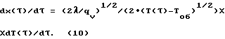 Поток молекул ТМ с открытой торцевой поверхности топливной таблетки определим по соотношению Мейера [14] = 0,25 n Va, (4)где n – равновесная концентрация молекул ТМ внутри твэла и определяется из соотношения [15] Pтм = n k T; (5)va – среднеарифметическая скорость молекул ТМ и определяется из соотношения [15] va = (8R0 T/( .M))1/2; (6)Pтм – давление пара ТМ; k – постоянная Больцмана; Т – температура на открытой торцевой поверхности топливной таблетки; Ro – универсальная постоянная; М – молекулярная масса. Учитывая экспоненциальную зависимость давления пара Ртм от температуры Т для широкого класса ТМ [16, 17], можно записать Ртм = В* ехр(-A/Т), (7)где А и В* – коэффициенты, зависящие от вида ТМ. В процессе испарения ТМ с открытой торцевой поверхности топливной таблетки ее первоначальная толщина уменьшается и в зависимости от времени ( меняется от 0 до момента времени = к, соответствующего завершению процесса переконденсации ТМ в твэле) будет равна x( ), причем, очевидно, скорость изменения dx( )/d будет соответствовать выражениюdx( )/d = -( тм/ тм)![]() ( ), (8)где x( ) – текущая толщина топливной таблетки; тм – масса молекулы ТМ: тм – плотность ТМ.