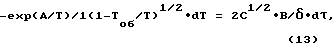 ![]() где Тоб – температура оболочки твэла, К; к – время переконденсации топливного материала, с; – толщина топливного материала, м;C = qv ![]() 2/(2 ), град;D = qv V2/(2![]() (2![]() Rс (Rc+Lc))2), град;qv – плотность тепловыделения в топливном материале, Вт/м3; – теплопроводность топливного материала, Вт/(м град);V – объем топливного материала, м3; Rс и Lc – внутренние радиус и длина твэла соответственно, м; А, град и В, м град1/2/с – коэффициенты, зависящие от вида топливного материала.