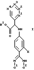 Изобретение относится к новым N-(4-карбамимидоилфенил)глициновым производным формулы ![]() где R1 обозначает водород или фрагмент сложноэфирной группы, который может расщепляться в физиологических условиях; Е обозначает водород или гидрокси; три символа из Х1-Х4 независимо друг от друга обозначают группу C(Ra), C(Rb) или C(Rc), а четвертый обозначает группу C(Rd) или N; Ra-Rd каждый независимо друг от друга обозначает водород, алкенил, алкенилкарбонилоксиалкокси, алкенилокси, алкинил, алкинилокси, алкокси, алкоксиалкенил, алкоксиалкокси, алкоксиалкил, алкоксиалкил(алкил)аминоалкил, алкоксиалкилкарбоксамидо, алкоксикарбонил, алкоксикарбонилалкокси, алкоксикарбонилалкил, алкоксикарбонилалкилкарбоксамидо, алкоксикарбониларилалкокси, алкоксикарбониларилокси, алкоксикарбонилкарбоксамидо, алкил, алкил(алкилкарбонил)амино, алкилкарбонил, алкилкарбонилалкокси, алкилкарбонилоксиалкокси, алкилкарбоксамидо, алкилкарбоксамидоалкокси, алкилсульфанил, алкилсульфанилалкокси, алкилсульфинил, алкилсульфонил, алкилсульфониламино, алкилсульфониламиноалкокси, алкилуреидил, алкилтиоуреидил, амино, аминоалкокси, арил, арилалкенил, арилалкинил, арилалкокси, арилалкоксиалкокси, арилалкил, арилалкилкарбоксамидо, арилкарбонилалкокси, арилкарбоксамидо, арилкарбоксамидоалкокси, арилокси, арилоксиалкокси, арилсульфониламино, арилсульфониламиноалкокси, карбокси, карбоксиалкил, карбоксиалкилкарбоксамидо, карбоксиалкокси, карбоксиарилалкокси, карбоксиарилокси, карбоксикарбоксамидо, карбамоилалкокси, циклоалкил, циклоалкокси, циклоалкилалкокси, циклоалкиламино, циклоалкиламиноалкил, циклоалкиламинокарбонилокси, циклоалкилкарбамоилалкокси, циклоалкилкарбоксамидо, дигидроксиалкокси, галоген, галоалкенил, галоалкокси, галоалкил, гидрокси, гидроксиалкокси, гидроксиалкоксиалкокси, гидроксиалкил, гидроксициклоалкокси, гидроксициклоалкиламино, моно- или диалкиламино, моно- или диалкиламиноалкокси, моно- или диалкиламиноалкил, моно- или диалкиламинокарбонилалкокси, 2,2,2-трифторацетиламиноалкокси или гетероциклический заместитель, выбранный из группы, включающей азепанилкарбонилалкокси, бензоимидазолил, морфолинилалкокси, морфолинилалкил, морфолинилоксоалкокси, пиперидинилалкокси, пиперидиниламино, пиперидиниламиноалкил, пиперидинилокси, алкилсульфонилпиперидинилокси, фуранилалкокси, 1,3-диоксо-1,3-дигидроизоиндолилалкил, имидазолил, имидазолилалкил, изатиазолилокси, дигидроизоксазолил, пиперазинил, пиперазинилалкил, пиридиниламиноалкил, биспиридинилалкиламино, пиридинилокси, пиримидиниламиноалкилазепанилиденамино, пирролидинил, пирролидинилалкокси, пирролидинилалкил, пирролидинилокси, пирролидинилоксоалкокси, оксопирролидинилалкокси, оксадиазолил, тетрагидрофуранилалкокси, тетрагидрофуранилокси, тетрагидропиранилалкокси, тетрагидропираниламино, тетрагидротиопираниламино, тетрагидропиранилокси, диоксогексагидротиопираниламино, тиазолилалкокси и тиофенил, где гетероциклические заместители необязательно замещены алкилом, алкоксигруппой, карбоксиалкилом, гидрокси-, тетразолилметоксигруппой, алкилсульфонилом или алкоксикарбонилалкилом или две смежные группы из Ra-Rd вместе образуют фрагмент сконденсированного 1,4-диоксанового, 1,3-диоксоланового, 1-оксанового или арильного кольца, при условии, что не более