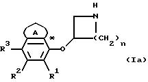 ![]() где А – необязательно ненасыщенное 5- или 6-членное кольцо, которое может содержать гетероатом, выбранный из N и S, и которое может быть замещено оксо- или (1-6С)алкилом; R1, R2 и R3 независимо друг от друга – атом Н, (1-6С)алкил, (1-6C)алкокси, (1-6С)алкокси-(1-6C)алкил, атом галогена; Х – атом О или S; n = 1 или 2, или его фармацевтически приемлемая соль, за исключением 3-(нафт-1-ил-окси)-пирролидина и 3-(5,6,7,8-тетрагидро-нафт-1-ил-окси)-пирролидина. 2. Соединение по п.1, отличающееся тем, что гетероатом А, если таковой присутствует, представляет собой атом N или S; 1 – атом Н, (1-6С)алкил, (1-6С)алкокси, (1-6С)алкокси-(1-6С)алкил; R2 – атом Н, (1-6С)алкокси или атом галогена и R3 – атом Н, (1-6С)алкил, (1-6С)алкокси или атом галогена. 3. Соединение по п. 2, отличающееся тем, что соединение имеет формулу (Iа) ![]() где А – незамещенное насыщенное 5-членное или необязательно ароматическое 6-членное кольцо, которое может содержать атом азота, соседний с положением, обозначенным звездочкой; R1 – атом Н или (1-6С)алкокси; R2 – атом Н, (1-6С)алкокси или галогена; R3 – атом Н или галогена; n = 1 или 2; 4. Соединение по п.3, отличающееся тем, что А – незамещенное насыщенное 5-членное или необязательно ароматическое 6-членное кольцо, R1 – (1-6С) алкокси и R2 и R3 – атом Н. 5. Соединение по п.4, отличающееся тем, что А – 5-членное кольцо и R1 – метоксигруппа. 6. Соединение по п.5, отличающееся тем, что n = 2. 7. Фармацевтическая композиция, обладающая сродством к 5-НТ2С-рецептору, содержащая соединение 3-(нафт-1-ил-окси)-пирролидин, или 3-(5,6,1,6-тетрагидро-нафт-1-ил-окси)-пирролидин, или любое соединение по одному из пп.1-6 и фармацевтически приемлемые добавки. РИСУНКИ