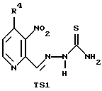 Альтернативный синтез соединения 2-карбоксальдегида (4)Раствор 2-метил-3-нитропиридина (3) (276 мг, 2 ммоль) и диметилформамид-диметилацеталя (ДМФДМА) (477 мг, 4 ммоль) в диметилформамиде (ДМФ) (1 мл) нагревают при 140oС в атмосфере N2 в течение 7 часов, затем перемешивают при комнатной температуре в течение ночи. Растворитель удаляют при пониженном давлении и остаток высушивают в вакууме. Реакционная смесь была абсолютно чистой и содержала один продукт, соединение 3а – 2-диметиламиновинил-3-нитропиридин, который используют на следующей стадии окисления без дополнительной очистки. Раствор 3а, полученного выше, и NaIО4 (1,283 г, 6 ммоль) в 50%-ном водном ТГФ (20 мл), перемешивают при комнатной температуре в течение 2 часов, фильтруют и экстрагируют несколько раз СН2Сl2. Объединенные экстракты промывают насыщенным солевым раствором и сушат над безводным Na2SO4. Выделяют флэш-хроматографии на силикагеле (гексаны – EtOAc=1:1), получая 256 мг (84%) 2-карбоксальдегида 4. Синтез гидразонового соединения 15 из 2-карбоксальдегида (4) Смесь карбоксальдегида 4 (750 мг, 4,93 ммоль) и тиосемикарбазида (540 мг, 5,92 ммоль) в 70%-ном этаноле (25 мл) перемешивают при комнатной температуре в течение 6 часов, фильтруют и промывают Н2О, C2H5OH, диэтиловым эфиром и сушат в вакууме, получая 893 мг (80%) целевого гидразона 15. 1Н-ЯМР (ДМСО-d6) 7,09 (уш., 1Н), 7,67 (дд, 1Н, J=4,9 и 8,2 Гц), 8,27 (с, 1H), 8,38 (д, 1Н, J=7,7 Гц), 8,60 (уш., 1Н), 8,85 (д, 1Н, J=4,4 Гц), 11,97 (с, 1Н).
