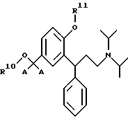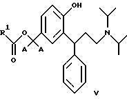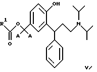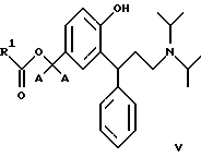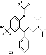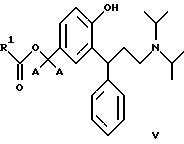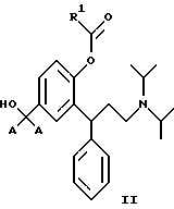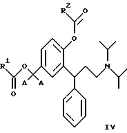 9. 3,3-Дифенилпропиламины по п.2, выбранные из сложных бензиловых моноэфиров, представленных общей формулой V![]() где R1 является таким, как определено в п.3. 10. 3,3-Дифенилпропиламины по п.9, выбранные из: 3-(3-диизопропиламино-1-фенилпропил)-4-гидроксибензилового эфира ( )-муравьиной кислоты,3-(3-диизопропиламино-1-фенилпропил)-4-гидроксибензилового эфира ( )-уксусной кислоты,3-(3-диизопропиламино-1-фенилпропил)-4-гидроксибензилового эфира ( )-пропионовой кислоты,3-(3-диизопропиламино-1-фенилпропил)-4-гидроксибензилового эфира ( )-масляной кислоты,3-(3-диизопропиламино-1-фенилпропил)-4-гидроксибензилового эфира ( )-изомасляной кислоты,3-(3-диизопропиламино-1-фенилпропил)-4-гидроксибензилового эфира ( )-2,2-диметилпропионовой кислоты,3-(3-диизопропиламино-1-фенилпропил)-4-гидроксибензилового эфира ( )-бензойной кислоты.