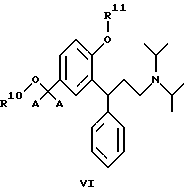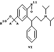 11. 3,3-Дифенилпропиламины по п.2, выбранные из простых эфиров и силиловых простых эфиров, представленных общей формулой VI![]() где по меньшей мере один из R10 и R11 выбран из С1-С6алкила, бензила или -SiRaRbRc, такого, как определено в п.1, а другой из R10 и R11 дополнительно может представлять собой водород, С1-С6алкилкарбонил или бензоил. 12. 3,3-Дифенилпропиламины по п.11, выбранные из: ( )-2-(3-диизопропиламино-1-фенилпропил)-4-метоксиметилфенола,( )-2-(3-диизопропиламино-1-фенилпропил)-4-этоксиметилфенола,( )-2-(3-диизопропиламино-1-фенилпропил)-4-пропоксиметилфенола( )-2-(3-диизопропиламино-1-фенилпропил)-4-изопропоксиметилфенола,( )-2-(3-диизопропиламино-1-фенилпропил)-4-бутоксиметилфенола,2-(3-диизопропиламино-1-фенилпропил)-4-метоксиметилфенилового эфира ( )-уксусной кислоты,2-(3-диизопропиламино-1-фенилпропил)-4-этоксиметилфенилового эфира ( )-уксусной кислоты,( )-2-(3-диизопропиламино-1-фенилпропил)-4-триметилсиланилоксиметилфенола,( )-диизопропил-[3-фенил-3-(2-триметилсиланилокси-5-триметилсиланилоксиметилфенил)-пропил]-амина,( )-[3-(3-диизопропиламино-1-фенилпропил)-4-триметилсиланилоксифенил] -метанола,( )-диизопропил-[3-(5-метоксиметил-2-триметилсиланилоксифенил)-3-фенилпропиламина,( )-диизопропил-[3-(5-этоксиметил-2-триметилсиланилоксифенил)-3-фенилпропиламина,( )-[4-(трет-бутил-диметилсиланилокси)-3-(3-диизопропиламино-1-фенилпропил)-фенил]-метанола,4-(трет-бутил-диметилсиланилокси)-3-(3-диизопропиламино-1-фенилпропил)-бензилового эфира ( )-уксусной кислоты,( )-4-(трет-бутил-диметилсиланилокси)-3-(3-диизопропиламино-1-фенилпропил)-фенола,4-(трет-бутил-диметилсиланилокси)-2-(3-диизопропиламино-1-фенилпропил)-фенилового эфира ( )-уксусной кислоты,( )-{ 3-[2-(трет-бутил-диметилсиланилокси)-5-(трет-бутил-диметилсиланилоксиметил)-фенил]-3-фенилпропил}-диизопропиламина,( )-[4-(трет-бутил-дифенилсиланилокси)-3-(3-диизопропиламино-1-фенилпропил)-фенил]-метанола,4-(трет-бутил-дифенилсиланилоксиметил)-2-(3-диизопропиламино-1-фенилпропил)-фенилового эфира ( )-уксусной кислоты,( )-4-(трет-бутил-дифенилсиланилоксиметил)-2-(3-диизопропиламино-1-фенилпропил)-фенола,4-бензилокси-3-(3-диизопропиламино-1-фенилпропил)-бензилового эфира ( )-уксусной кислоты,4-бензилокси-3-(3-диизопропиламино-1-фенилпропил)-бензилового эфира ( )-бензойной кислоты,4-бензилокси-3-(3-диизопропиламино-1-фенилпропил)-бензилового эфира ( )-изомасляной кислоты,( )-2-(3-диизопропиламино-1-фенилпропил)-4-(1 -D-глюкуронозилоксиметил)-фенола.