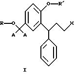 ![]() ![]() где R и R’ независимо выбраны из а) водорода, С1-С6алкила, С3-С10циклоалкила, бензила незамещенного или замещенного алкилом, алкокси, галогеном, нитро и ацетилом, аллила или глюкуронозильной группы; или б) формила, С1-С6алкилкарбонила, С3-С10циклоалкилкарбонила, арилкарбонила, незамещенного или замещенного алкилом, алкокси, галогеном, нитро и ацетилом, предпочтительно бензоила; или в) C1-С6алкоксикарбонила, замещенного или незамещенного арилоксикарбонила, бензоилацила, бензоилглицила, замещенного или незамещенного аминокислотного остатка; или г) ![]() где R4 и R5 независимо представляют собой водород, С1-С6алкил, арил, незамещенный или замещенный алкилом, алкокси, галогеном, нитро и ацетилом, предпочтительно замещенный или незамещенный фенил, бензил или феноксиалкил, где алкильный остаток имеет от 1 до 4 атомов углерода, и где R4 и R5 могут образовывать кольцо вместе с аминным атомом азота; или д) ![]() где R6 и R7 независимо представляют собой С1-С6алкил, арил, незамещенный или замещенный алкилом, алкокси, галогеном, нитро и ацетилом, предпочтительно замещенный или незамещенный фенил, бензил или феноксиалкил, где алкильный остаток имеет от 1 до 6 атомов углерода; или е) сложноэфирной группировки неорганических кислот, ж) -SiRaRbRc, где Ra, Rb, Rc независимо выбраны из С1-С4алкила или арила, предпочтительно фенила, при условии, что R’ не представляет собой водород, метил или бензил, если R представляет собой водород, и R не представляет собой этил, если R’ представляет собой водород; Х представляет собой третичную аминогруппу формулы Iа ![]() где R6 и R9 представляют собой неароматические углеводородные группы, которые могут быть одинаковыми или разными и которые вместе содержат по меньшей мере три атома углерода, и где R8 и R9 могут образовывать кольцо вместе с аминным атомом азота; Y и Z независимо представляют собой одинарную связь между (СН2)n группой и карбонильной группой, О, S или NH; А представляет собой водород (1Н) или дейтерий (2Н); n является числом от 0 до 12; и их соли с физиологически приемлемыми кислотами и, если соединения могут находиться в форме оптических изомеров, рацемическая смесь и индивидуальные энантиомеры. 2. 3,3-Дифенилпропиламины по п.1, где Х представляет собой ![]() 3. 3,3-Дифенилпропиламины по п.2, выбранные из сложных моноэфиров фенола, представленных общими формулами II и II’ ![]() ![]() где R1 представляет собой водород, C1-С6алкил или фенил. 4. 3,3-Дифенилпропиламины по п.3, выбранные из: 2-(3-диизопропиламино-1-фенилпропил)-4-гидроксиметилфенилового эфира ( )-уксусной кислоты,2-(3-диизопропиламино-1-фенилпропил)-4-гидроксиметилфенилового эфира ( )-пропионовой кислоты,2-(3-диизопропиламино-1-фенилпропил)-4-гидроксиметилфенилового эфира ( )-н-масляной кислоты,2-(3-диизопропиламино-1-фенилпропил)-4-гидроксиметилфенилового эфира ( )-изомасляной кислоты,2-(3-диизопропиламино-1-фенилпропил)-4-гидроксиметилфенилового эфира (R)-(+)-изомасляной кислоты, 2-(3-диизопропиламино-1-фенилпропил)-4-гидроксиметилфенилового эфира ( )-2,2-диметилпропионовой кислоты,2-(3-диизопропиламино-1-фенилпропил)-4-гидроксиметилфенилового эфира ( )-2-ацетамидоуксусной кислоты,2-(3-диизопропиламино-1-фенилпропил)-4-гидроксиметилфенилового эфира ( )-циклопентанкарбоновой кислоты,2-(3-диизопропиламино-1-фенилпропил)-4-гидроксиметилфенилового эфира ( )-циклогексанкарбоновой кислоты,2-(3-диизопропиламино-1-фенилпро