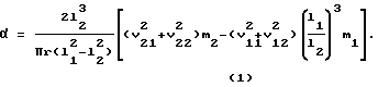 Если теперь изменить направление действия Р’ на противоположное, то в (2) знак Р изменится на противоположный, а знак f( ) останется прежним, ибо сила поверхностного натяжения по своей сущности всегда является сжимающей. Учитывая сказанное и применяя формулу (2) к обоим образцам при сжимающем и растягивающем действиях Р’ (Р’1, Р’2), можно получить формулу![]() В этой формуле величины осевых сил сжатия (растяжения) P’1, P’2 в пределах устойчивости образцов остаются произвольными. Если воспользоваться этим и положить P’1 = 2m1l1(v12 2-v11 2), (4) P’2 = 2m2l2(v22 2-v21 2), (5) то формула (3) переходит в (1). Требования (4) и (5) физически означают замену P1 и Р2 их эффективными (эквивалентными) постоянными величинами P’1 и P’2. Иначе говоря, Р’1 и Р’2 такие постоянные силы, которые влияют на v в точности так же, как и веса P1 и Р2 образцов при их вертикальных положениях. В сравнении с известным [3] в предлагаемом устройстве отсутствуют градиентная печь для автономного нагрева образца и рычаг с системой компенсации и измерения силы, выполненной в виде струны; оно обеспечивает сравнительно просто измерение твердого тела практически при любой температуре. При всем этом предлагаемое устройство не уступает по точности известному [3], так как величины, входящие в правую часть рабочей формулы (l, r, m, v), поддаются измерению с высокой точностью (погрешность измерений v ~ 0,01%).