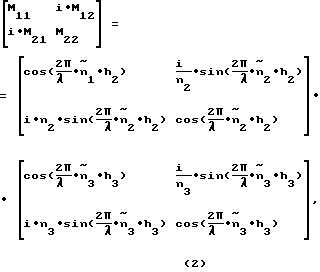 Задача синтеза рассматривается в вариационной постановке и сводится к минимизации функционала по толщине слоя и по значению комплексного показателя преломления антиотражающего свет верхнего слоя 3. В качестве начального приближения ищется решение в одной центральной спектральной точке = 0,55 мкм и находится требуемая толщина антиотражающего свет слоя 3 h3, которая при полученном комплексном показателе преломления антиотражающего слоя 3 удовлетворяет заданному нулевому коэффициенту отражения в этой точке.