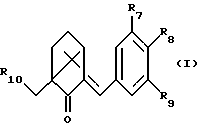 Из силиконовых производных (б) предпочтительны такие, которые отвечают формуле (I)![]() в которой R2 выбирают из СН3 или группы ![]() R3 выбирают из СН3 или группы R2; R4 выбирают из водорода, СН3 или групп ![]() ![]() R6 означает органическую группу с 1-40 атомами углерода, которая может содержать аминогруппы, карбоксильные группы или сульфонатные группы, и, если с=0, R6 означает анион неорганической кислоты; радикалы R1 могут быть одинаковыми или разными и их выбирают из алифатических углеводородов с 1-20 атомами углерода, алифатических или циклоалифатических углеводородов с 3-20 атомами углерода и групп R5, отвечающих нижеприводимой формуле: ![]() n означает целое число от 1 до 6; х и у означают целые числа, выбираемые таким образом, чтобы молекулярная масса полисилоксана составляла 300-30000; а и b означают целые числа от 0 до 50 и с означает 0 или 1. Предпочтительно R1 выбирают из метила, этила, пропила, бутила, изобутила, пентила, изопентила, гексила, октила, децила, додецила и октадецила; циклоалифатических радикалов, в частности из циклогексильных групп; ароматических групп, в частности фенильных или нафтильных групп; смесей ароматических и алифатических радикалов, таких как бензил и фенилэтил, и также толил и ксилил. Предпочтительны радикалы R4, отвечающие формуле (CO)c-R6, где R6 означает алкил, циклоалкил или арил, с 1-40 атомами углерода, который может содержать дополнительные группы, такие как NH2, COOH и/или SО3Н. Предпочтительны радикалы R6, когда с=0, которые представляют собой фосфатные или сульфатные группы. Особенно предпочтительными силиконовыми производными (б) являются те, которые отвечают следующей общей формуле: ![]() Относительное содержание производного (б) в сополимере обычно составляет 0,1-50 мас.% и предпочтительно 1-20 мас.%. Предпочтительны сополимеры силикона и акрилата, растворимые в воде, или диспергируемость которых в воде такая, что в смеси воды с этанолом в объемном соотношении 50: 50 они растворимы в количестве выше 0,1 г/л и предпочтительно выше 0,2 г/л. Композиция предпочтительно включает 0,1-20 мас.% этого сополимера силикона и акрилата и более предпочтительно 0,5-10 мас.% по отношению к массе композиции. Композиция предпочтительно включает 0,1-20 мас.% фотозащитного компонента и более предпочтительно 0,2-10 мас.% по отношению к массе композиции. Из активных в отношении ультрафиолетовых лучей спектра А органических фильтров, используемых согласно изобретению, можно назвать: (1) производные дибензоилметана; (2) активные в отношении ультрафиолетовых лучей спектра А фильтры следующей формулы (I): ![]() в которой R7 и R9, одинаковые или разные, означают атом водорода, атом галогена, радикал ОН; насыщенный или ненасыщенный, линейный или разветвленный (C1-С10)-алкильный радикал; насыщенный или ненасыщенный, линейный или разветвленный (C1-С10)-алкоксильный радикал или группу НSО3; R10 означает атом водорода или группу НSО3; R8 означает гидроксил; группу ОR11, где R11 означает насыщенный или ненасыщенный, линейный или разветвленный (C1-С10)-алкильный радикал; или же группу следующей структуры: ![]() в которой R12 означает атом водорода или группу НSО3; или же группу следующей формулы: ![]() или же группу следующей формулы: ![]() в которой Z означает атом кислорода или радикал -NH-; R13, R14, R15 и R16, одинаковые или разные, означают атом водорода, атом галогена, радикал ОН; насыщенный или ненасыщенный, линейный или р
