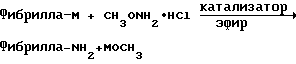 К модифицированным бензиловым эфиром N -CBZ-L-лизина фибриллам (113 мг) в метаноле (4 мл) добавляли гидроксид натрия (1 н., 4 мл) и реакционную смесь перемешивали в течение ночи. Продукт, N -CBZ-L-лизин-фибриллы, интенсивно промывали водой и метанолом и эти фибриллы сушили под вакуумом. К суспензии N -CBZ-L-лизин-фибрилл (50 мг) в ацетонитриле (4 мл) добавляли триметилсилилиодид (1 мл). Смесь перемешивали в течение 3 часов при 40oС. Конечные бифункциональные фибриллы интенсивно промывали водой, метанолом, 0,5 н. гидроксидом натрия, ацетонитрилом и метиленхлоридом. Аминокислотный анализ показал 0,3 мкмолей лизина на грамм фибрилл.