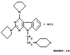 ПРИМЕР 11. Амид (2,4-ди-1-пирролидинил-9Н -пиримидо-[4,5-b]индол-9-ил) уксусной кислоты (IV) и гидрохлорид (V)Следуя общей методике примера 9, но используя аммиак вместо морфолина, получают свободное основание (IV) указанного в заголовке соединения, которое превращают в указанное в заголовке соединение, т.пл. = 260-264o; ЯМР (СН3ОD) 8,06, 7,36, 5,12, 4,05, 3,67 и 2,08 .