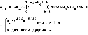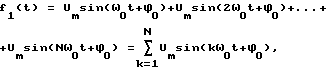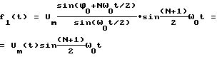 представляющее отношение мгновенных значений синусоидальных колебаний с кратностью частот N, равной числу суммируемых для получения испытательного сигнала гармонических колебаний кратных частот и равных амплитуд. Такое представление испытательного сигнала позволяет для его формирования использовать не N генераторов колебаний кратных частот, а всего лишь один с частотой колебаний