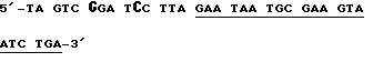 (последовательность с идентификационным 2). Подчеркнутая последовательность в этом праймере идентична нуклеотидам 2362-2381 в последовательности штамма Brescia (Moormann и др., 1990, Virology, 177: 184-198), жирным шрифтом обозначен сайт BamH1. 3′-Концевой (-)смысловой праймер включает стоп-кодон, расположенный рядом с сайтом ВаmH1. Он имеет последовательность