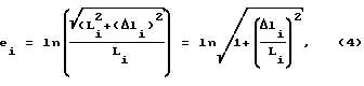 Вывод формулы (3)Деформация ei горизонтальной полки за один переход, начиная со второго, с учетом определения логарифмической деформации дается формулой ![]() где – смещение горизонтальной полки в i-ом переходе.