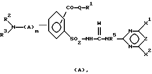 д) Диспергируемый в воде гранулят получают размалыванием в стержневой мельнице:75 весовых частей соединения формулы (Б1) или смеси активных веществ из гербицида формулы (А) и антидота формулы (Б1), 10 ” лигнинсульфокислого кальция, 5 ” лаурилсульфата натрия, 3 ” поливинилового спирта и 7 ” каолина с последующим гранулированием полученного порошка в грануляторе с кипящим слоем с разбрызгиванием воды в качестве гранулирующей жидкости. е) Диспергируемый в воде гранулят получают предварительным измельчением и гомогенизацией в коллоидной мельнице: 25 весовых частей соединения формулы (Б1) или смеси активных веществ из гербицида формулы (А) и антидота формулы (Б1), 5 ” 2,2′-динафтилметан-6,6′-дисульфоната натрия, 2 ” натриевой соли олеоилметилтаурина, 1 ” поливинилового спирта, 17 ” карбоната кальция и 50 ” воды с последующим размолом в шаровой мельнице и высушиванием полученной суспензии разбрызгиванием через форсунку в осушительной башне. Биологические примеры Пример 1 Различные культурные растения выращивают в теплице в пластиковых горшках диаметром 9 см до заданной фазы развития и затем их обрабатывают гербицидом или, соответственно, смесью гербицида и антидота. Гербицид формулы (А) и соединения формул (Б) наносят в виде водных суспензий или, соответственно, эмульсий с расходом воды из расчета 300 л/га. Через четыре недели после обработки проводят визуальную оценку на любой вид повреждений растений нанесенными гербицидами, принимая во внимание главным образом эффект и продолжительность задержки роста. Оценка проводится в процентах по шкале от 0 до 100% по сравнению с необработанными контрольными растениями. Результаты опытов, представленные в табл. 1-3, показывают, что различные соответствующие изобретению антидоты не оказывают отрицательного воздействия на гербицидную активность и позволяют селективно применять гербициды на таких культурах, как пшеница, ячмень и кукуруза. Пример 2 Повторяют пример 1 данной заявки с той лишь разницей, что определяют фитотоксичность в рисовых культурах, при этом применяют средства, состоящие исключительно из активных веществ А8, А10 и известного из заявки ЕР 04922367 активного вещества X, сложного метилового эфира 4-иод-2-[3-(4-метокси-6-метил-1,3,5-триазин-2-ил)-уреидосульфонил] -бензойной кислоты в виде натриевой соли, или средства, содержащие указанные активные вещества и антидот Б1-9. Средства, их доза и результаты опыта сведены в Таблице 4. Пример 3 Растения пшеницы, ячменя и Avena fatua (AVFA) выращивают в теплице (18oС днем, 12oС ночью) в пластиковых горшках диаметром 9 см до стадии 3-4 листьев и затем их обрабатывают известным средством из гербицида, хлоримурон-этила, и антидота, обозначенного в данной заявке как “Б1-1”, а также предлагаемым средством из гербицида А5 или А6 и антидота Б1-1. Все средства наносят в виде водных препаратов с расходом воды из расчета 300 л/га. Через две недели после обработки проводят визуальную оценку на фитотоксичность культурных растений по сравнению с необработанными контрольными растениями, а через четыре недели осуществляют визуальную оценку гербицидного действия в отношении AVFA по сравнению с необработанным контрольным растением. Оценки проводятся в процентах по шкале от 0 до 100%. При этом 0% означает, что повреждение не наблюдалось, а 100% – полная гибель растений. Результаты опытов, предс