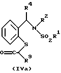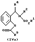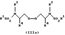 (57) Реферат: Изобретение относится к тиолсульфонамидам формул ![]() ![]() или ![]() ![]() ![]() где R1 представляет собой радикал, имеющий длину больше, чем насыщенная цепь из четырех атомов углерода, и короче, чем насыщенная цепь из восемнадцати атомов углерода, и при вращении вокруг оси, проходящей через положение 1, связанное с SO2, и положение 4 6-членного кольца или через положение 1, связанное с SO2-группой и связанное с заместителем положения 3 или 5 5-членного кольца, определяет трехмерный объем, самый большой размер которого в ширину составляет примерно от одного фенильного кольца до примерно трех фенильных колец в направлении, поперечном оси вращения; R2 означает гидридо, С1-С6 алкил, фенил-С1-С4 алкил, гетероарил-С1-С4 алкил, С2-С4 алкил, замещенный амино; С2-С4 алкил, замещенный монозамещенным амино или дизамещенным амино, где заместители у азота монозамещенной или дизамещенной аминогруппы выбраны из С1-С6 алкила, ар (С1-С6) алкила, С5-С8 циклоалкила и С1-С6 алкилкарбонила, или где два заместителя и азот, к которому они присоединены, вместе образуют пирролидинил, пиперидинил, пиперазинил, морфолинил, тиоморфолинил, пирролил, имидазолил, пиразолил, пиридил, пиразинил, пиримидинил и другие. R2 может быть гидридо только тогда, когда R1 представляет 4-(фенилазо)фенил, R4 означает гидроксикарбонил, аминокарбонил, С1-С6 алкил, R9 означает С1-С6 алкил, фенил и другие. Предлагаемые соединения являются ингибиторами металлопротеаз, что позволяет использовать их при лечении состояний, связанных патологической активностью матриксной металлопротеазы. 6 с. и 24 з.п. ф-лы, 99 табл. Текст описания в факсимильном виде (см. чертежи) Т Т Т То Формула изобретения