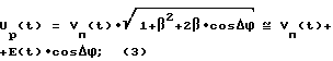 1, что имеет место при перегрузке УВЧ 21, огибающую и фазу результирующего колебания можно представить в виде