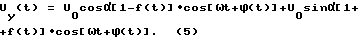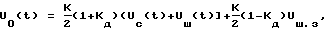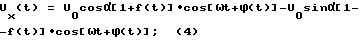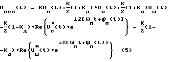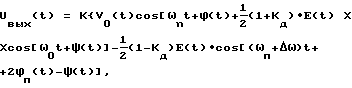 Введем обозначение![]() При 1, что имеет место при перегрузке УВЧ 21, огибающую и фазу результирующего колебания можно представить в виде![]() ![]() где ![]() = ( п– 0)t+ п(t)- (t).С учетом (1-4) результирующее колебание на входе УВЧ 21 можно записать ![]() Рассмотрим вариант, когда УВЧ может быть реализован на ЛБВ, амплитудная характеристика в этом случае будет иметь вид, приведенный на фиг.3. Примем, что амплитуда помехи постоянна и равна Uп – плоский участок характеристики 2Е, а фаза сигнала при действии перегружающей помехи не изменяется. При этом амплитуда колебания на выходе УВЧ 21 будет постоянна. Известно (см. Гоноровский И.С. “Радиотехнические цепи и сигналы”, М.: Сов. радио, 1977 г.), что в области частоты первой гармоники выходное колебание с выхода УВЧ 21 может быть записано ![]() где ![]() ![]() где Jкп – функции Бесселя. С учетом 1 после преобразования получим![]() ![]() Или в развернутом виде можно записать ![]() Предлагаемое устройство, функциональная схема которого приведена на фиг. 2, позволяет значительно уменьшить влияние паразитной амплитудной модуляции. Частотные характеристики фильтра предварительной селекции 16 и фильтра анализа 19 приведены на фиг.4. Фильтр анализа 19 настраивается на частоту режекции полезного сигнала с таким расчетом, чтобы на вход устройства анализа 20 полезный сигнал поступал в сильно ослабленном виде. На выходе УВЧ 21 установлен фильтр 22 основного сигнала, настроенного на частоту полезного сигнала, полоса пропускания этого фильтра выбирается из условий неискаженности передачи полезного сигнала, получившего в УВЧ паразитную амплитудную модуляцию в соответствии с функцией времени ![]() Анализирующее устройство 20 проводит оценку амплитуды помехи, поступающей на вход УВЧ, и формирует сигнал, предназначенный для регулировки усиления регулируемого усилителя 23 с целью устранения паразитной амплитудной модуляции полезного сигнала. Сигнал на выходе фильтра 22 основного сигнала, как следует из выражения (1), имеет вид ![]() где Uш.з – зеркальная составляющая шума. Коэффициент усиления регулируемого усилителя 23 в результате регулирования изменяется в соответствии с функцией ![]() На его выходе получим ![]() где Kpo– среднее значение коэффициента усиления РУ. Отношение сигнал/шум на выходе РУ (регулируемого усилителя) будет ![]() где qo – отношение сигнал/шум на входе УВЧ. На выходе вычитателя 13 будет сигнал ![]() который через линию задержки 15, необходимую для компенсации задержки сигнала в основном канале, подается на вход синхронного детектора 14, на второй вход которого подается, в качестве опорного, сигнал с выхода регулируемого усилителя 23. На выходе синхронного детектора 14 в области низких частот получим сигнал Ucд = U–(t)Uр(t) = KV0[f(t) cos -sin ],где K – коэффициент передачи синхронного детектора. Из этого выражения видно, что сигнал Ucд содержит постоянную составляющую, знак которой зависит от знака угла рассогласования . В данном случае эта составляющая равнаU= -KV0sin ,которая выделяется с помощью фильтра 17 и подается на устройство 18 управления положением осей поляризации возбудителей, которое повернет облучатели так, что угол станет равным нулю. При рассогласовании в другую сторону (угол – отрицательный), указанная составляющая будет положительной и облучатели будут повернуты в противоположную сторону.