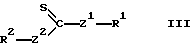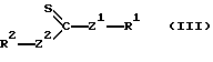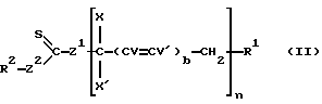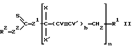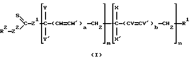 Из соединений формулы (V) предпочтение отдается тем, в которых R1 является группой -СН2-фенил-СН2– или группой -СНСН3СО2СН2СН2СО2СНСН3-. Соединения формул (III), (IV) и (V) легко доступны. Те, в которых Z1 является атомом серы и Z2 является атомом кислорода, называемые алкилксантогенатами, могут, в частности, быть получены в результате реакции между ксантогенатной солью, например ксантогенатом щелочных металлов типа