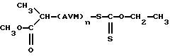 В колбу объемом 10 мл помещают 1 ммоль -(О-этилксантил)этилпропионата (0,222 г) и 40 ммоль винилацетата (AVM) (3,44 г). Температуру доводят до 80oС и добавляют 0,02 ммоль перекиси лауроила (8,52 мг).
