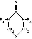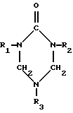 ![]() где R1 и R2 = H, CH2OH, и 1-5% триазинов общей формулы ![]() где R1 и R2 = H, CH2OH, R3 = H, CH3. Синтез карбамидоформальдегидной смолы осуществляют путем конденсации карбамидоформальдегидного концентрата с первой порцией карбамида в присутствии регулятора вязкости – добавки деминерализованной воды или 5%-ного водного раствора метанола с рН= 7,5-9,0 в течение 10 мин при 90oС с рН = 7,6-8,8 до достижения мольного отношения формальдегид:карбамид = 2,0. По завершении щелочной стадии проводят быстрое охлаждение реакционной смеси до (80 2)oС, ввод кислого агента с целью снижения рН до уровня 5,0 и менее, проведение при (81 2)oС кислой конденсации до начала коагуляции смолы, подщелачивание и одновременный ввод второй порции карбамида и буры или аналогичного по действию соединения и завершение доконденсации при (66 2)oС в течение 30 мин.