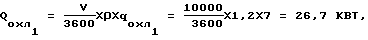 Удельный полезный расход холода:на охлаждение 1 кг смеси воздуха (прототип) qохл1=Iсм-Iсмохл=52,2-45=7,2 кДж/кг; в предлагаемом способе: на охлаждение 1 кг смеси наружного воздуха ![]() на охлаждение 1 кг рециркуляционного воздуха ![]() суммарный удельный полезный расход холода ,где 0,1 – относительное количество наружного воздуха в общем количестве циркулирующего воздуха; 0,9 – относительное количество рециркуляционного воздуха в общем количестве циркулирующего воздуха. Учитывая общее количество воздуха V=10000 м3/ч, определяем полезный расход холода при охлаждении воздуха: по способу прототипу ![]() по заявляемому способу ![]() где – плотность воздуха, кг/м3.