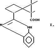 Сутьизобретениясостоитвсоздании( )-цис-3-(2′-бензимидазолил)-1,2,2-триметилциклопентанкарбоновой кислоты формулы![]() проявляющей сахароснижающее и антидиабетогенное действие (в дальнейшем соединение формулы I). Заявленное соединение формулы I получают ацилированием ортофенилендиамина ангидридом ( )-камфорной кислоты.