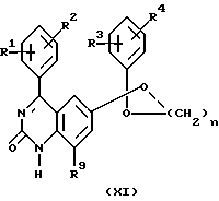 (57) Реферат: Предложены производные хиназолинона общей формулы (I) и их фармацевтически приемлемые кислотно-аддитивные соли и стереохимические изомерные формы, где пунктирная линия является необязательной связью; Х является кислородом; R1 и R2 каждый независимо являются водородом или галогеном; R3 и R4 каждый независимо являются водородом или галогеном; R5 является водородом, галогеном или радикалом формулы -O-R10 (а-1) или -N-R11R12 (а-3), где R10, R11 и R12 являются водородом; R6 является радикалом формулы (b-1) или (b-2), где R16 является водородом или фенилом; R17 является водородом или C1-6алкилом; R7 является водородом или C1-6алкилом, при условии что пунктирная линия не является связью; R8 является водородом, C1-6алкилом или Het1CH2; R9 является водородом; Het1 является пиридинилом. Соединения общей формулы (I) обладают ингибирующей фарнезилтрансферазу активностью и могут быть использованы для получения лекарственных средств, ингибирующих пролиферативные заболевания. Объектами изобретения также являются фармацевтическая композиция, обладающая ингибирующей фарнезилтрансферазу активностью, на основе соединений общей формулы (I); способ получения этой композиции; промежуточные производные хиназолинона общей формулы (IX) и их кислотно-аддитивные соли или стереохимические изомерные формы, в которой n равно 2 или 3 и R1, R2, R3, R4 и R9 имеют значения, определенные выше; способ получения представителей соединений общей формулы (I), где R6 является радикалом формулы (b-2), и способ получения промежуточных производных хиназолинона общей формулы (XI) и их кислотно-аддитивных солей или стереохимических изомерных форм. 6 с. и 4 з.п.ф-лы, 4 табл. ![]() ![]() ![]()