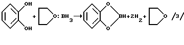 Пример 3. Получение катехолборана осуществляют аналогично примеру 1. Мольное соотношение пирокатехин : диборан составляет 1:0,4.