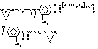 (57) Реферат: Изобретение относится к лакокрасочной промышленности и предназначено для защиты бетонных, металлических и асфальтоцементных поверхностей от химического и атмосферного воздействия и разрушения. Композиция включает эпоксидиановую смолу, уретановый модификатор, растворитель, полиэтилсилоксановую жидкость и аминный отвердитель, в качестве уретанового модификатора содержит олигомер формулы ![]() средней молекулярной массы 1900, содержащий 6-7% активных эпоксидных групп. Определенное соотношение компонентов позволяет увеличить водостойкость покрытия в 1,5 раза и снизить в 1,5 раза содержание остатка в композиции. 2 табл. Изобретение относится к лакокрасочной промышленности и предназначено для защиты бетонных, металлических и асфальтоцементных поверхностей от химического и атмосферного воздействия и разрушения. Известна полимерная композиция для покрытий, включающая полипропиленгликольдиуретандиэпоксид, эпоксидиановую смолу и смесь метафенилдиамина и анилина, в качестве отвердителя, взятых в весовом соотношении 0,9:1,0-1:1, при следующем соотношении компонентов, вес.ч.: Полипропиленгликольдиуретандиэпоксид – 100 Эпоксидиановая смола – 10-50 Смесь метафенилдиамина и анилина – 13,0-21,0 [патент SU 899599, МПК C 08 L 63/00, C 08 D 3/58, 1982]. Однако покрытие на основе этой композиции обладает недостаточной химической стойкостью. Наиболее близким к изобретению по технической сущности является композиция для покрытий, содержащая эпоксидиановую смолу, уретановый модификатор, растворитель, полиэтилсилоксановую жидкость ПЭС-5 и аминный отвердитель при следующем соотношении компонентов, мас.%: Эпоксидиановая смола – 18-25 Уретановый модификатор – 8-15 Растворитель – 63,9-65,4 Полиэтилсилоксановая жидкость – 0,05-0,10 Аминный отвердитель – 2-3 Недостатком покрытия, получаемого на основе такой композиции, является его невысокая водостойкость. Технической задачей изобретения является повышение водостойкости покрытия и содержания сухого остатка в композиции. Техническая задача решается тем, что композиция, включающая эпоксидиановую смолу, уретановый модификатор, растворитель, полиметилсилоксановую жидкость и аминный отвердитель, в качестве уретанового модификатора содержит олигомер формулы ![]() средней молекулярной массы 1900, содержащий 6-7% активных эпоксидных групп, при следующем соотношении компонентов, мас.ч.: Эпоксидиановая смола – 100 Олигомер указанной формулы – 5,3-100 Растворитель – 70,2-133,3 Полиэтилсилоксановая жидкость – 1,75-3,33 Аминный отвердитель – 10,2-12,7 Решение технической задачи позволяет увеличить водостойкость покрытия в 1,5 раза и снизить в 1,5 раза содержание сухого остатка в композиции. В качестве эпоксидной диановой смолы используют олигомеры ЭД-20, ЭД-16, ЭД-22 (ГОСТ 10587-84). В качестве уретанового модификатора используют олигомер, полученный на основе простого полиэфира полифурита, 2,4-толуилендиизоцианата и глицидола [Синтез и некоторые свойства эпоксиуретановых смол./ С.М.Дивгун, Г.Т.Боронина, В. Н.Убойцева и др. – в кн.: Химическая технология, свойства и применение пластмасс. – Л.: Ленингр. технол. ин-т, 1977, с. 96-100]. В качестве растворителя используют смесь толуола, этилцеллозольва и бутилцеллозольва при соотношении 2:1:1 – 1:2:2 соответственно, но также возможно использование 1,3-диоксалана и других растворителей, используемых в эпоксидных 