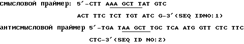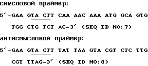 Первичные антитела менялись в зависимости от обнаруживаемого антигена:CRPV L1 испытывали с кроличьей анти-CRPV сывороткой “позднего ответа” (Bodesign International, Kennebunk, ME). CRPV L2 испытывали с кроличьей анти-CRPV L2-сывороткой. HPV6a L1 испытывали с моноклональными антителами МАВ 837 (Chemicon International, Inc, Temecula, СА). HPV6a L2 испытывали с мышиной антисывороткой слитого белка L2-trpE HPV типа 6а. Визуализацию иммунных комплексов осуществляли стандартными способами, используя конъюгацию вторичных антител со щелочной фосфатазой и хромогенным субстратом NBT/BCIP. Е. Просеивающий капиллярный электрофорез в растворе (SSCE). Образцы CRPV VLP (около 0,2 миллиграм/миллилитр) нагревали при 100oС в течение 15 минут в 1% 2-меркаптоэтаноле и 1% (в/о) SDS. Образец наносили электрокинетически вместе с маркером-свидетелем, меллитовой кислотой, в капилляр из плавленного кварца размером 42 см (22 см для детектора) х 0,05 мм внутреннего диаметра, предварительно уравновешенным с 10 облученными объемами 0,1 N NаОН, водой и просеивающим реагентом ProSort (Аррliеd Biosystems, Foster Citu, CA). Подавали градиент напряжения 300 В сек/см от источника питания Applied Biosystems Model 270A-HT СЕ. Элюируемый образец отслеживали абсорбцией при 215 нм и данные обрабатывали, используя программное обеспечение Nelson Turbochrom 3.