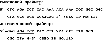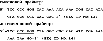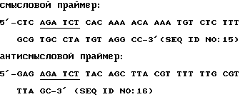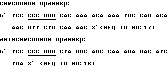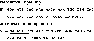 Пример 15Защита от появления папиллом, вызванного CRPV, вакцинацией VLPs L1 CRPV, полученных в дрожжах 5 новозеландских белых кроликов иммунизировали внутримышечно либо 135 мг VLPs (75% чистоты, см. пример 17), адсорбированных квасцами, либо 100 мг рекомбинантного поверхностного антигена гепатита В (99% чистоты), адсорбированного гидроокисью алюминия, в качестве негативного контроля. Животные получили более двух стимуляций с интервалом в 8 недель перед введением им CRPV в течение 10 дней после последней стимуляции. Сыворотку брали перед иммунизацией, при каждой стимуляции, и перед контрольным заражением ее анализировали L1-VLP специфичной ELISA. Непрямое испытание ELlSA применяли для определения реакции антител сыворотки на VLPs L1 CRPV, экспрессированных дрожжами. Антигенами, писпользованными в ELISA, являлись VLPs L1 CRPV, экспрессированные в клетках насекомых с рекомбинантными бакуловирусами, фактически, как описано Christensen et al. (J. Virol. , 64:3151-3156, 1990, J. Gen. Virol., 75: 2271-2276, 1994). В качестве вторичных антител использовали конъюгат антикроличий IgG-щелочная фосфатаза козла и п-нитрофенилфосфат как субстрат (Kirkegaard and Rerry Labs. , Inc.). Абсорбцию измеряли при 405 нм. Титр определяли разведением (3-кратное разведение сыворотки, начиная от 1:100) и считали положительным, если L-специфическая абсорбция превышала показания средней абсорбции плюс 2 стандартных отклонения кроличьей сыворотки, полученной до иммунизации. Точные титры вычисляли по этим данным, используя SOFTmax-программу, версию 2.3 (Molecular Devices Inc., Menlo Park. CA). Титры анти-L1 VLP-антител были 4-недельными после первой иммунизации и они увеличивались с каждой дополнительной стимуляцией. Титры контрольных животных были отрицательными. 6 недель спустя после введения CRPV вакцинированные животные не имели бородавок в 15 из 15 участков (вирусный штамм имел разведение 1: 2 или 1:12), тогда как у контрольных животных образование бородавок наблюдали в 12 из 15 участков (разведение вируса 1:2) или в 9 из 15 участков (разведение вируса 1:12). Спустя 15 недель вакцинированные животные все еще не имели бородавок. Опыты по нейтрализации вируса были выполнены (фактически в соответствии с методом Christensen et al., 1991, Virology, 181:572-579) путем смешивания кроличьей сыворотки с CRPV и последующим введении кроликам, зараженных CRPV. Стандартом для определения нейтрализации антителами была полная нейтрализация вируса (3/3 участков, не образующие бородавок). Анализировали образцы сыворотки от 5 вакцинированных животных и 5 контрольных животных. Сыворотка, собранная после введения 1 дозы VLPs L1 CRPV, содержала антитела, которые полностью нейтрализовали неразведенный препарат вируса у 80% кроликов (4/5). После введения 2 или 3 доз VLPs L1 СRРV 100% кроликов имели антитела, нейтрализующие вирус. Контрольная сыворотка не обнаруживала какой-либо активности, нейтрализующей вирус. В зависимости от конечного титра сыворотка отобранных вакцинированных животных могла бы быть разведена в 10-1000 раз и все еще обладала бы 100% нейтрализующей способностью. Для выяснения, действительно ли нейтрализующая способность антител является специфичной для нативных VLРs L1 CRPV, отбирали образец иммунной сыворотки и инкубировали с квадратными кусками нитроцеллюлозы, насыщенной нативными или денатурированными VLPs L1 CRPV, полученными в дрожжах. Квадраты нитроцеллюлозы (1 см2) насыщали нативными или денатурированными (редуцировали и алкил