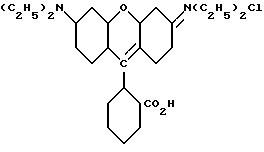 Технический результат достигается тем, что в способе изготовления термостойкого материала формированием покрытия на тканевой подложке при нанесении полимерной композиции, включающей поливинилхлорид, пластификатор, трехокись сурьмы и стабилизатор, в качестве подложки используют вискозную или смесовую вискозно-полиэфирную ткань с прочностью на разрыв по основе не менее 500 Н, а по утку не менее 300 Н, в композицию дополнительно вводят эпоксидный олигомер и наполнитель, содержащий углекислый кальций, стеариновую кислоту и продукт конденсации м-диэтиламинофенола с фталевым ангидридом в присутствии серной кислоты, при следующем соотношении компонентов, мас.ч.:Поливинилхлорид – 100 Пластификатор – 55-65 Трехокись сурьмы – 14-18 Стабилизатор – 2-4 Углекислый кальций – 9-11 Стеариновая кислота – 0,5-15 Эпоксидный олигомер – 1-2 Продукт конденсации м-диэтиламинофенола с фталевым ангидридом в присутствии серной кислоты – 3-5 Для нанесения покрытия можно использовать известные эпоксидные олигомеры, пластификаторы и стабилизаторы. Наиболее технологичными для заявляемого способа из известных указанных компонентов являются: эпоксидный олигомер – эпоксидная смола ЭД-16 или ЭД-20, пластификатор – смесь диоктилфталата и диоктилсебацината с соотношением компонентов в диапазоне 4,0-5,0:1-2, стабилизатор – барий-кадмий стеарат. Используемый продукт конденсации м-диэтиламинофенола с фталевым ангидридом в присутствии серной кислоты имеет следующую формулу: ![]() Изобретение поясняется следующими примерами. Пример 1. Для изготовления материала используют следующие компоненты: ПВХ, ГОСТ 14332-78Е; трехокись сурьмы, ТУ 48-14-1-82 или ТУ 6-09-3267-84; диоктилфталат (ДОФ), ГОСТ 8728-77Е; диоктилсебацинат (ДОС), ГОСТ 8728-77Е; эпоксидная смола ЭД-16, ЭД-20, ГОСТ 10587-84; барий-кадмий стеарат, ТУ 8-094808-81; стеариновая кислота, ГОСТ 9419-78; углекислый кальций, ГОСТ 8253-79; продукт конденсации м-диэтиламинофенола с фталевым ангидридом в присутствии серной кислоты фирмы Radiant, Бельгия. Компоненты полимерной композиции перемешивают в смесителе при Т=100 5oС в течение 45 5 мин и вальцуют при Т=150 5oС в течение 20 1 мин. Пластикат снимают с вальцев в горячем состоянии.