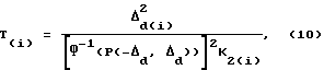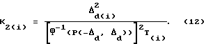 Для решения поставленной задачи необходимо найти плотность распределения действительного значения погрешности цифрового группового эталона т.е. W( t)![]() Выражение для W( , t) может быть получено в результате интегрирования промежуточной функции [3]![]() полученной путем замены переменных в уравнении (6), здесь ![]() ![]() ![]() J – якобиан преобразования ![]() Общее уравнение для W( ,t) примет вид![]() При заданном доверительном интервале (- d; + d) и доверительной вероятности P(- d; + d), учитывая выражение (7) и выражение для вероятности попадания значения случайной величины в какой-либо конечный интервал, можно записать![]() Путем замены переменных приводим подынтегральное выражение в формуле (8) к виду функции ошибок (функции Лапласа), значение которой сведены в таблицы [4] ![]() Общее решение уравнения для определения межповерочного интервала Tn для n средств измерений, входящих в цифровой групповой эталон, в этом случае примет вид ![]() где Ф-1(P(- d, d)) – функция, обратная Ф(P(- d, d)).Решив подобную задачу для единичного средства измерений, получим выражение для межповерочного интервала хранителя цифрового группового эталона ![]() где T(i) – межповерочный интервал данного хранителя. Выражение для оценки погрешностей хранителей *i цифрового группового эталона примет вид![]() где t1 – момент времени внутригрупповых сличений цифрового группового эталона (год). Выражение для определения коэффициента диффузии i-го хранителя цифрового группового эталона K2(i) имеет вид ![]() С учетом (11, 12) выражение для оценки погрешностей хранителей *i цифрового группового эталона примет вид![]() Таким образом, воспользовавшись (5, 11, 12), определим оценку суммарной погрешности цифрового группового эталона *Σ![]() С учетом (4) запишем систему из n уравнений в матричном виде M * = N, (15)где ![]() где *i – оценки основной погрешности i-х хранителей цифрового группового эталона, ![]() Матрицу оценок * основных погрешностей хранителей цифрового группового эталона в момент времени t1 находим из уравнения * = M-1N. (16)Обратная матрица коэффициентов системы М-1 (16) принимает вид ![]() Оценку значения единицы физической величины цифрового группового эталона по результатам взаимных сличений получим по критерию максимального правдоподобия. Пусть действительное значение единицы физической величины i-го хранителя в цифровом групповом эталоне Xi подчиняется гауссовскому закону, тогда функция правдоподобия может быть записана в виде ![]() где Х – действительное значение единицы физической величины цифрового группового эталона; 2i – дисперсия Xi.
