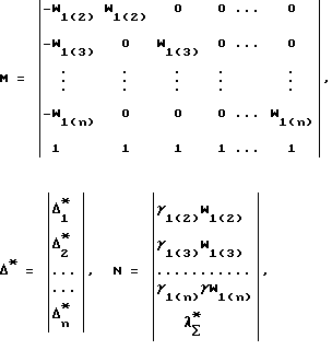 Запишем уравнения (2) с учетом соответствующих весов сличений умножив эти уравнения слева и справа на соответствующие весовые коэффициенты (3)![]() В системе (4) из n(n-)/2 уравнений линейно инвариантными являются только n-1. Выбрав из (4) n-1 уравнений с большими весовыми коэффициентами, содержащих погрешности каждого хранителя цифрового группового эталона, необходимо дополнить получившуюся систему выражением для суммарной погрешности цифрового группового эталона ![]() , добившись тем самым вынужденной инвариантности системы из n уравнений![]() где i – погрешность i-го хранителя цифрового группового эталона на момент сличений t1.