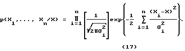 В силу независимости погрешностей функция правдоподобия для цифрового группового эталона запишется в виде![]() Уравнение оптимальной оценки значения единицы физической величины цифрового группового эталона Х* по критерию максимального правдоподобия имеет вид [5] X*=arg max{p(X1,…,Xn/X)}. Запишем уравнение оценивания в общем виде, воспользовавшись необходимыми условиями экстремума ![]() С учетом (17) уравнение оценивания примет вид ![]() откуда ![]() Так как в момент t1 Xi и 2i неизвестны, предлагается итоговое уравнение оценивания значения единицы физической величины записать с учетом статистических дисперсий 2i, характеризующих изменение погрешности хранителей относительно предыдущей поверки Xi(t0) (1)Xi = Xi(t0)+ *i; 2i = 2i = ( *i– i(t0))2, (19)где 2i – статистическая дисперсия погрешности i-го хранителя цифрового группового эталона.