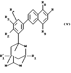 V представляет атом кислорода (-О-), азарадикал (-NH-), радикал ![]() в которой W, R1, R1‘, R2, R3 и R4 такие, как определено в п.1, или включают фармацевтически приемлемые соли или их оптические или геометрические изомеры и при условии, что указанное соединение не является агонистическим лигандом в отношении специфических рецепторов RAR- .